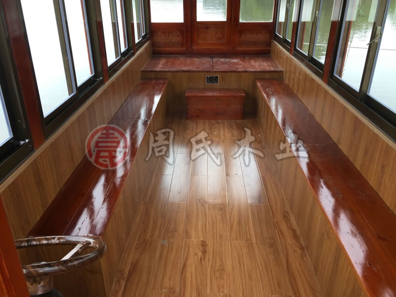 该画舫船由江苏国家级非物质文化遗产、江苏周氏木业有限公司厂制造。