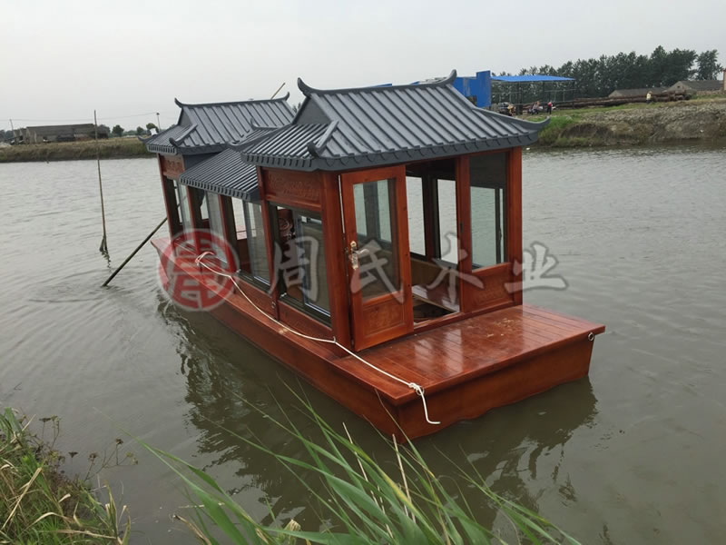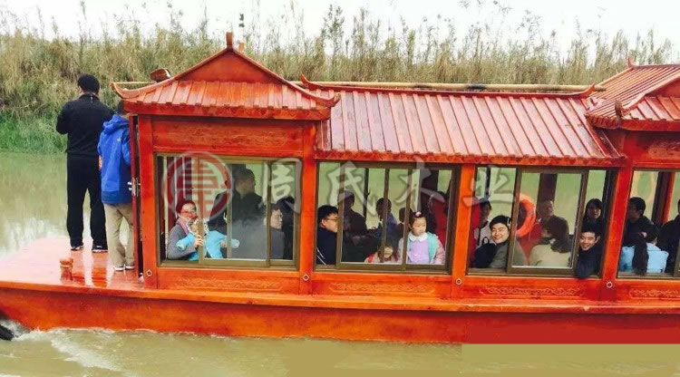 船身主体为木质仿古造型结构,采用电动电力动力源推进,
